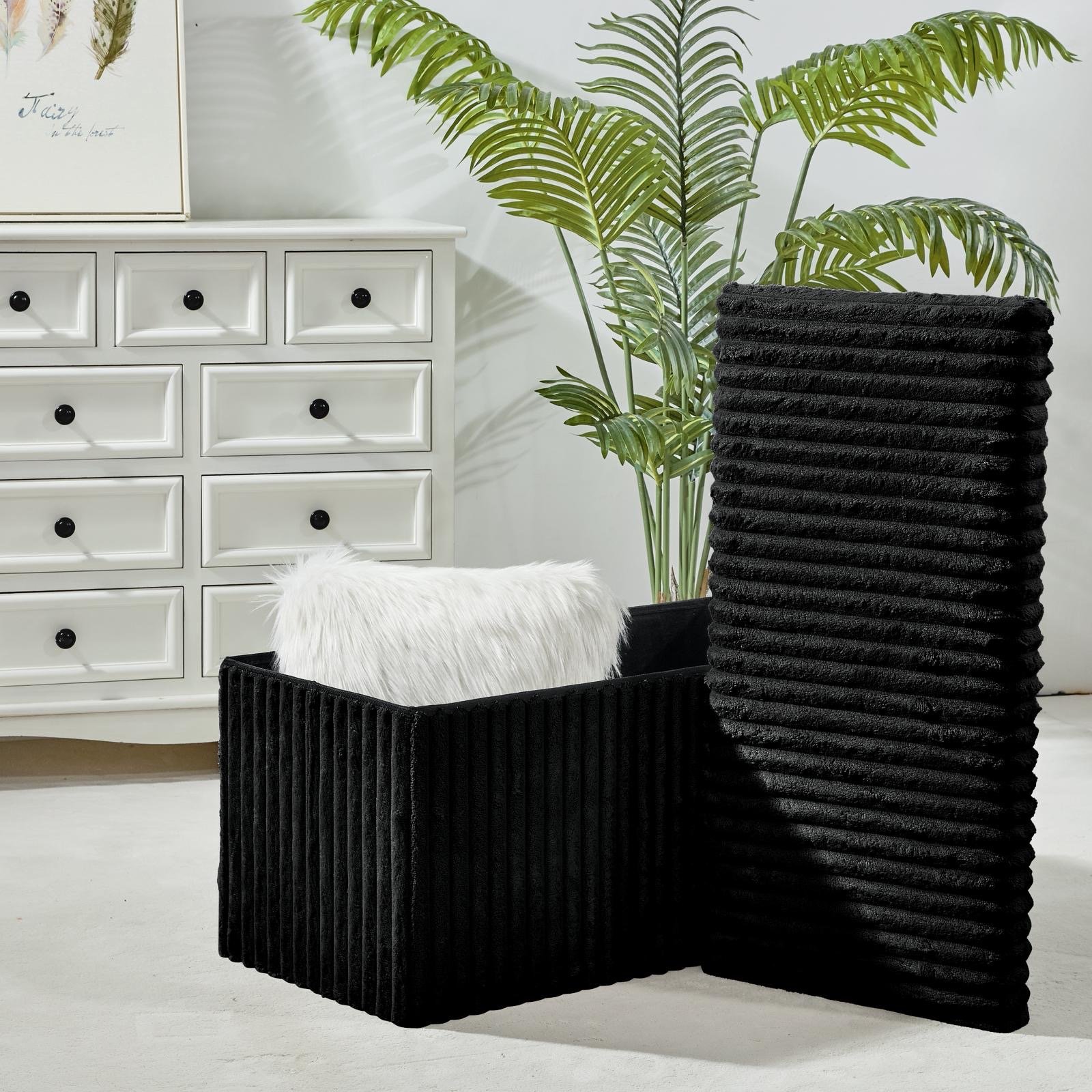 Ribbed Crushed Velevt Ottoman folding Storage box